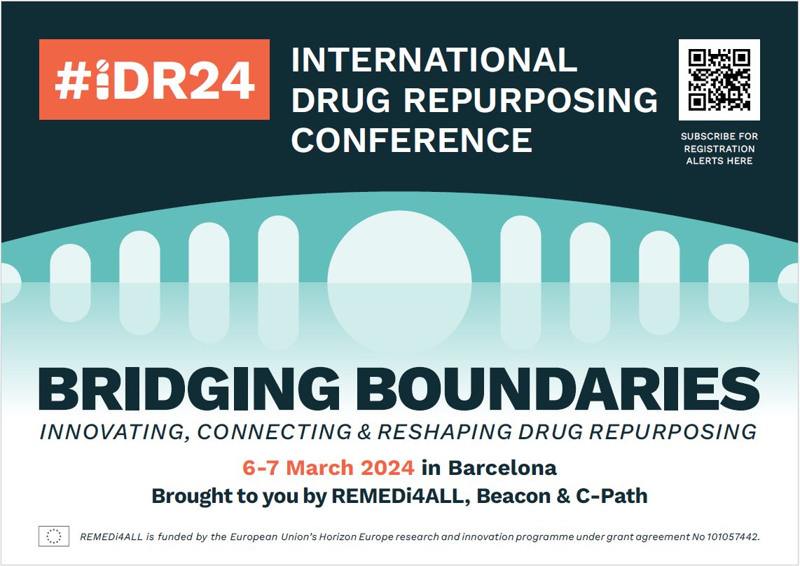 This time around we are teaming up with REMEDi4ALL and MeRIT to deliver the first international drug repurposing conference, #iDR24, taking place on 6th – 7th March 2024 in Barcelona.
